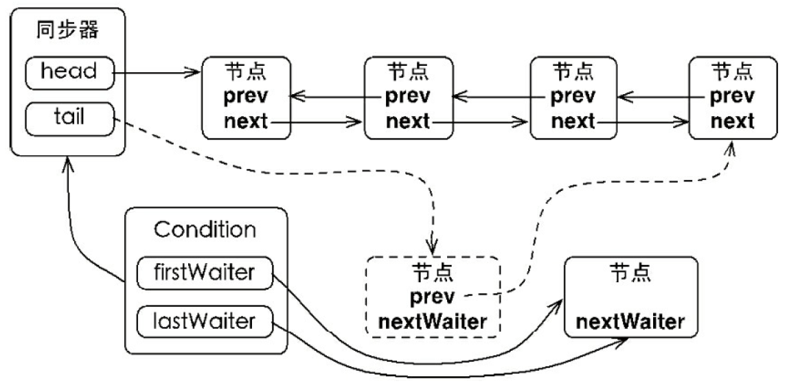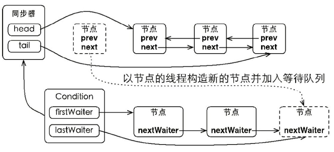 await()相当于同步队列的首节点移动到等待队列的尾节点 - 调用