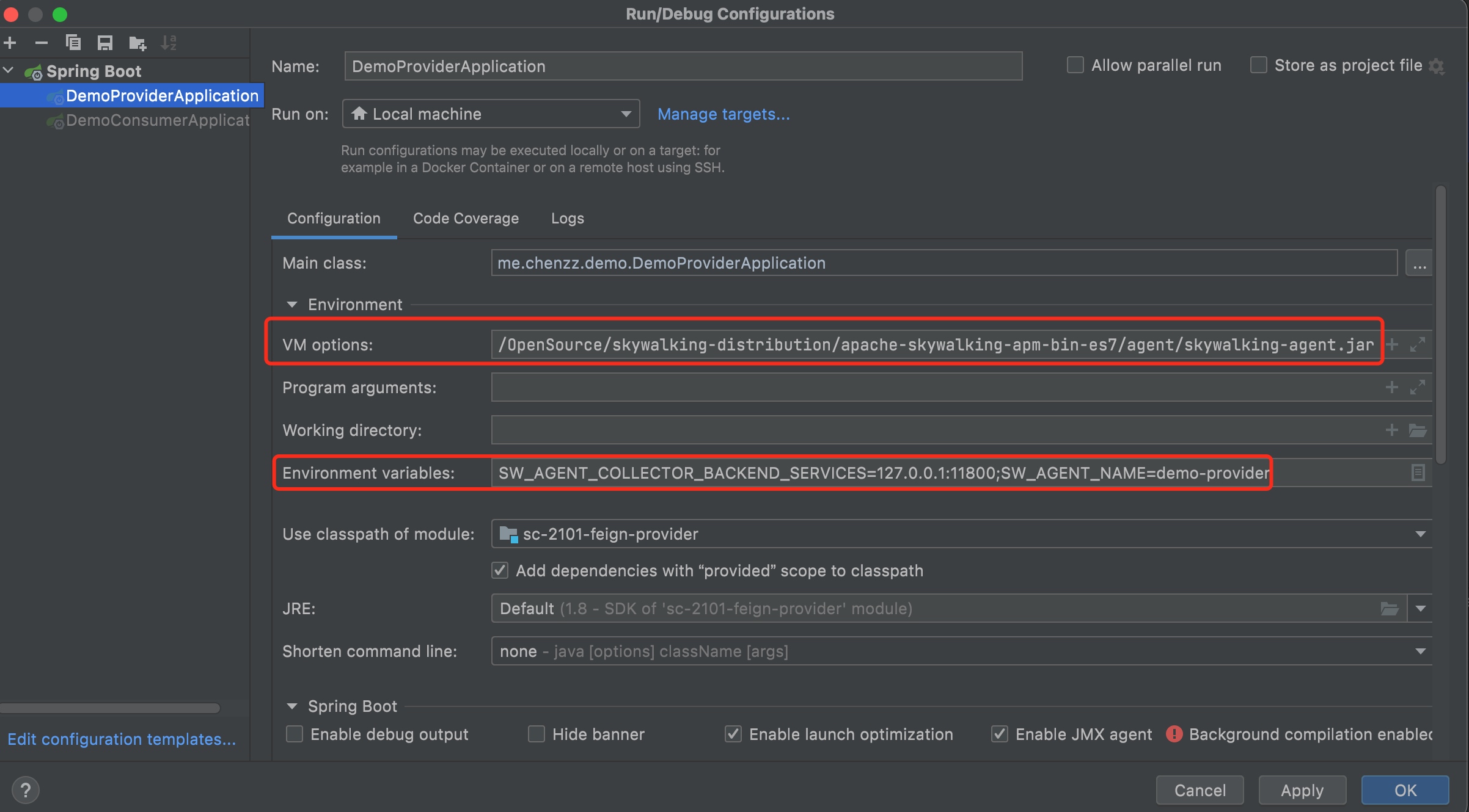 - SW_AGENT_COLLECTOR_BACKEND_SERVICES=127.0.0.1:11800;SW_AGENT_NAME=demo-provider