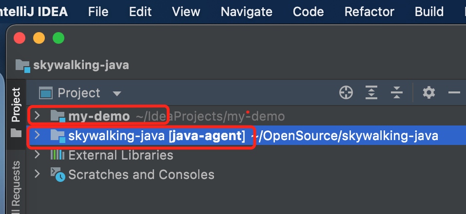 把 skywalking-java 作为一个module和agent工程在一个窗口打开