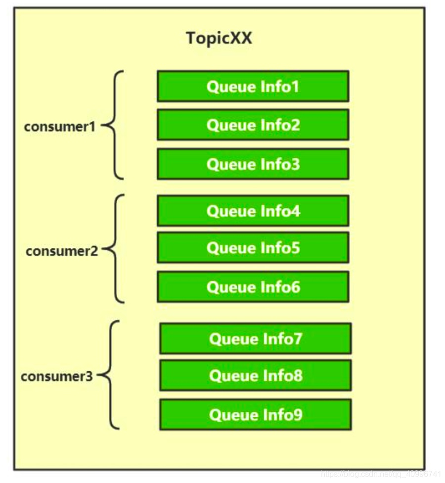 广播消息:各集群消费全量的消息,单条消息在每个集群都会被消费一次