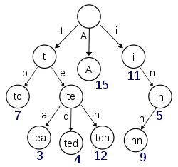 例子是一个包含 "A", "to", "tea", "ted", "ten", "i", "in", 和 "inn" 的 trie 树。这棵树不会包含所有的term,它包含的是term的一些前缀。通过term index可以快速地定位到term dictionary的某个offset,然后从这个位置再往后顺序查找。再加上一些压缩技术(搜索 Lucene Finite State Transducers) term index 的尺寸可以只有所有term的尺寸的几十分之一,使得用内存缓存整个term index变成可能。整体上来说就是这样的效果。