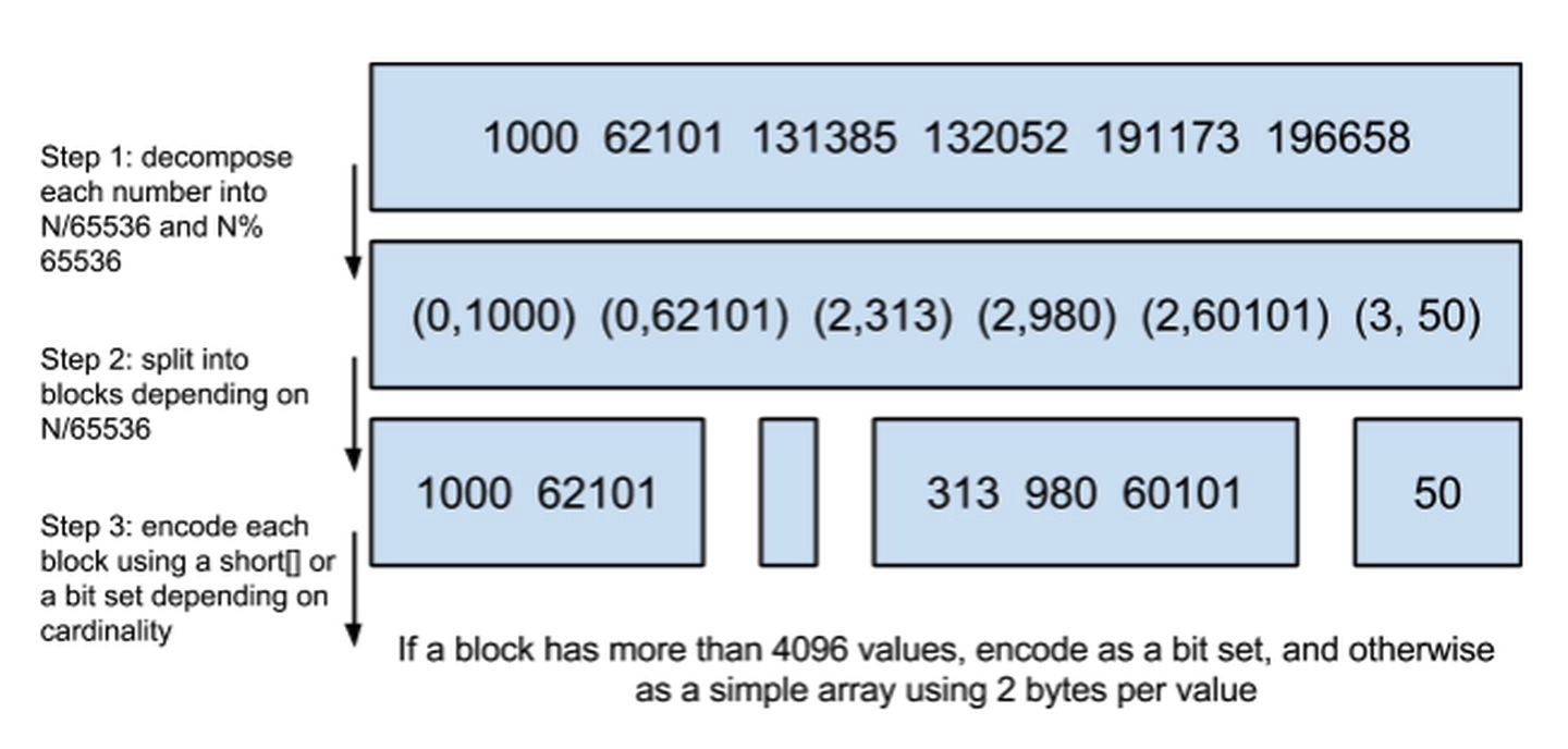Lucene使用的这个数据结构叫做 Roaring Bitmap。